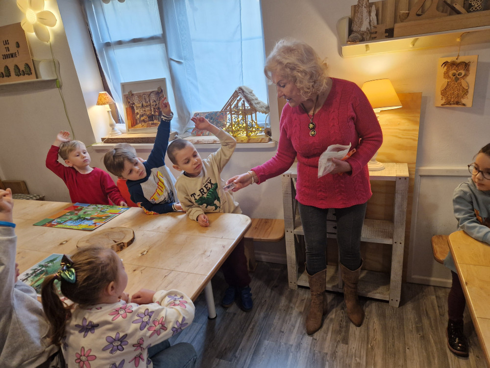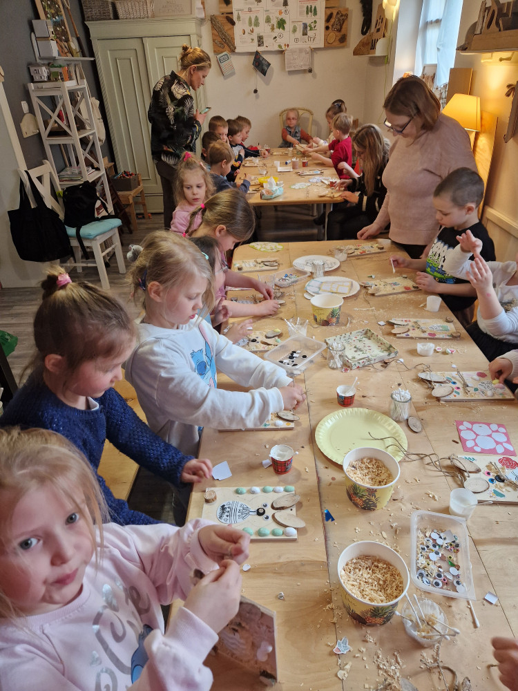 W dniu dzisiejszym dzieci z grupy "Kotki" i "Pszczółki" wybrały się autokarem na wycieczkę na warsztaty wielkanocne do Centrum Edukacyjnego "Mali Architekci Drewna" w Michałowicach. W trakcie wycieczki zwiedziliśmy pracownię stolarską, poznając tajniki pracy stolarza oraz wyposażenie pracowni stolarskiej, uczestniczyliśmy w zajęciach edukacyjnych na temat lasu, jego mieszkańców oraz różnych gatunków drzew, a także samodzielnie wykonaliśmy proste prace plastyczno - techniczne w trakcie warsztatów stolarskich - zajączki wielkanocne, które zabraliśmy do przedszkola, na pamiątkę tej fascynującej wycieczki :)