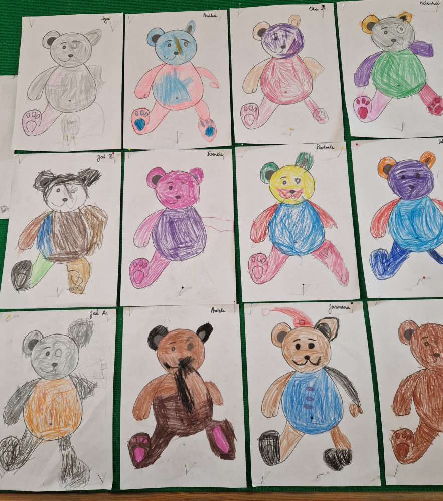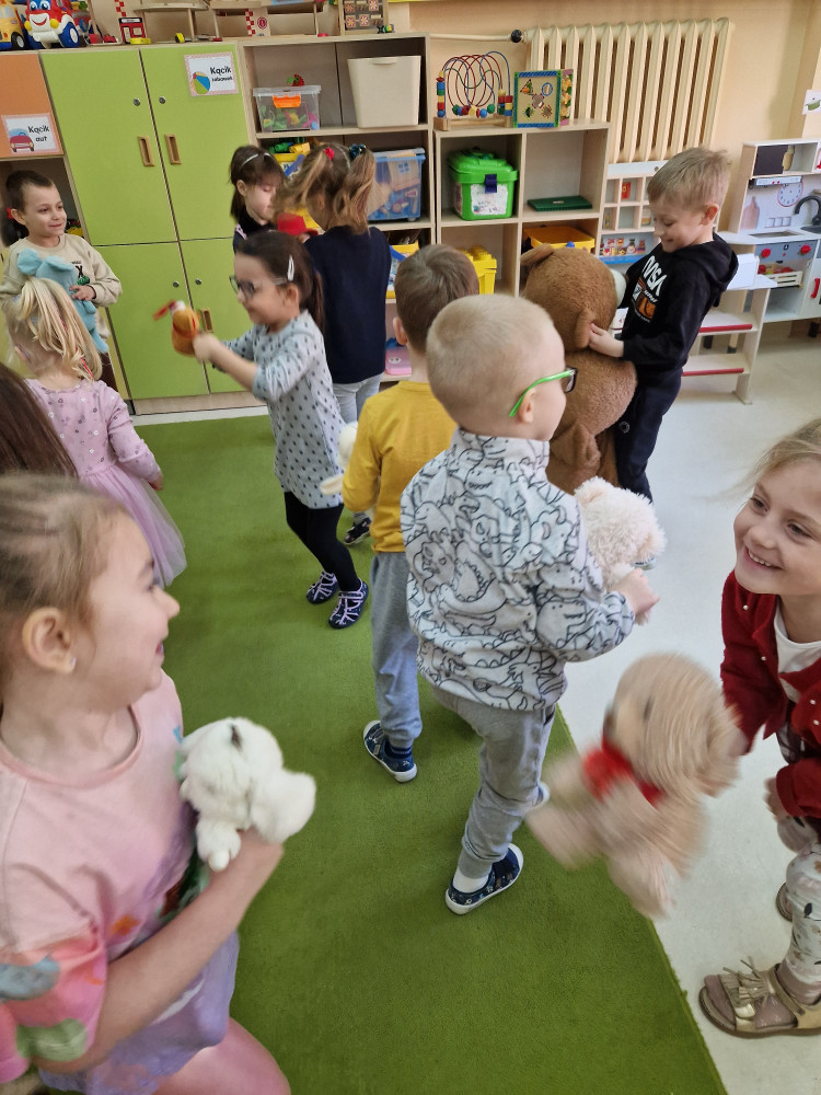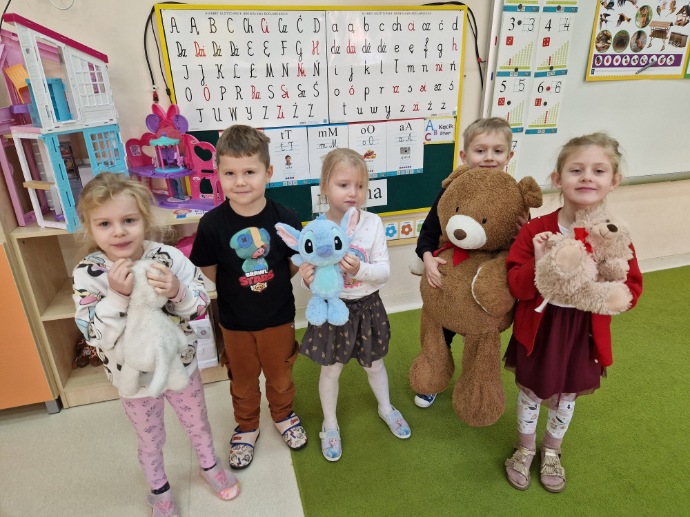 W dniu dzisiejszym, tj. 25 listopada 2024 r. w naszym przedszkolu obchodziliśmy Światowy Dzień Pluszowego Misia. Z tej okazji, wszystkie przedszkolaki przyszły do przedszkola wraz ze swoimi ulubionymi, pluszowymi przyjaciółmi. Były wesołe zabawy taneczne z misiami przy muzyce, śpiewanie piosenki pt. "O kochaniu misia", zagadki na temat tych najbardziej, ale i tych mniej znanych bajkowych misiów, a także praca plastyczno - graficzna, czyli dorysowywanie i kolorowanie brakującej, drugiej połowy misia. Wszyscy zgodnie dziś stwierdziliśmy, że misie to najlepsi przyjaciele, towarzysze i pocieszyciele dzieci: potrafią uspokoić albo rozweselić dzieci, otrzeć im łzy, kiedy jest im smutno oraz utulić do snu, kiedy dzieci są zmęczone. Nie bez powodu, misie uznawane są za najpopularniejsze zabawki na świecie! A nasze przedszkolaki co roku potwierdzają tylko tę tezę :)