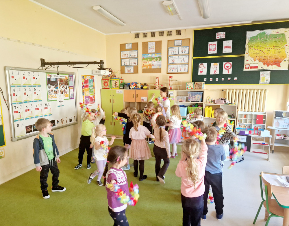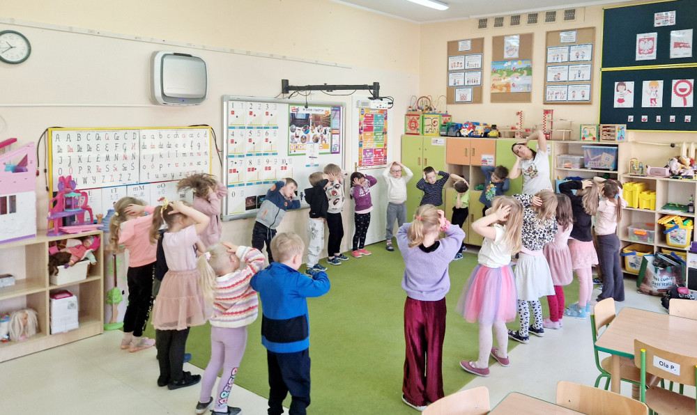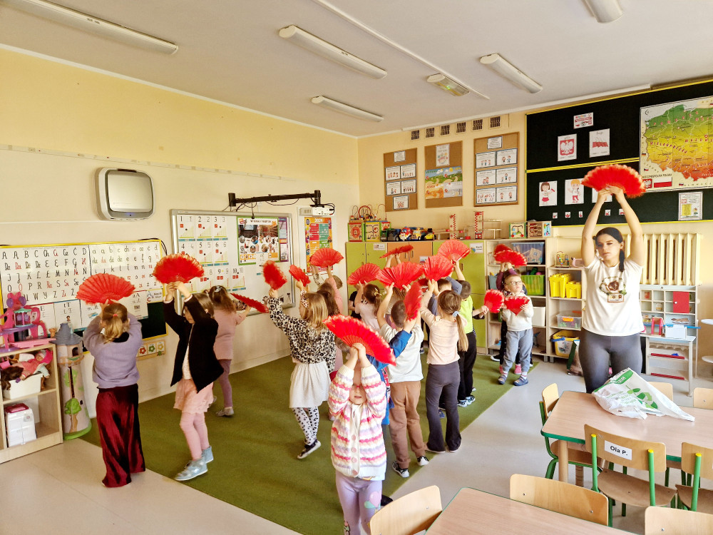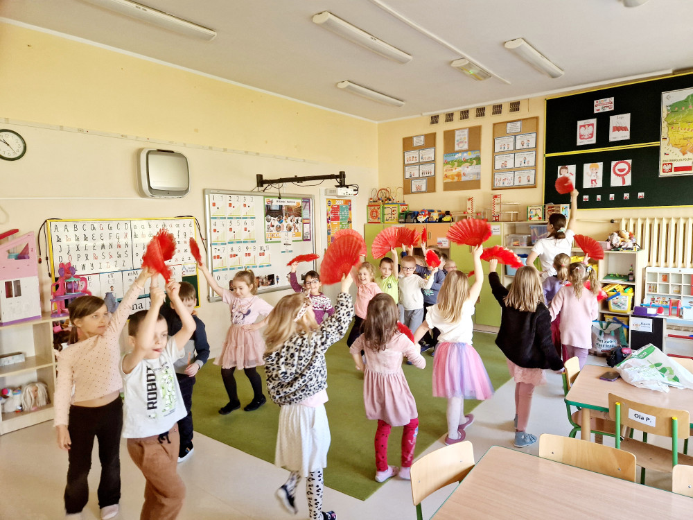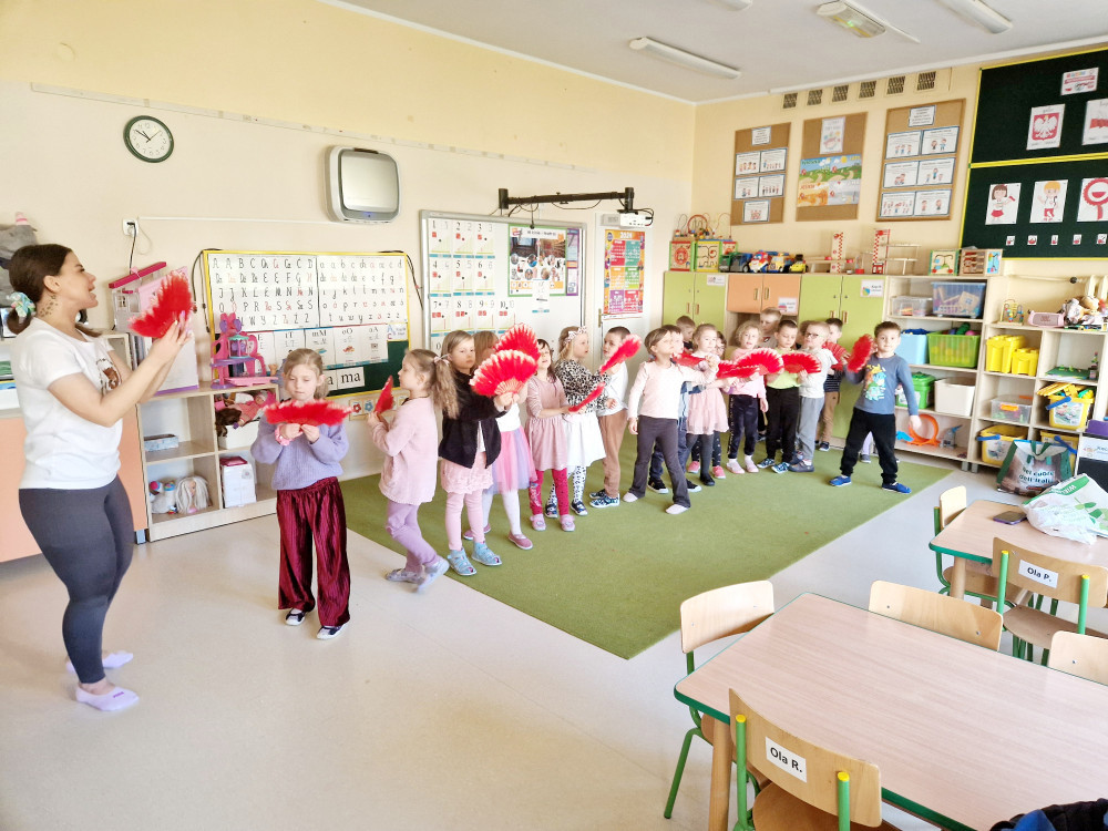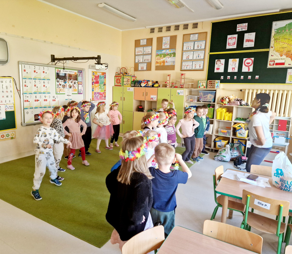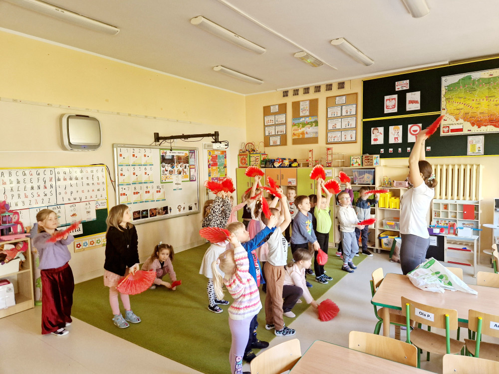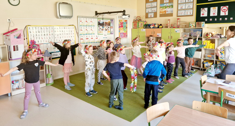 Na dzisiejszych zajęciach muzyczno - tanecznych z cyklu Roar Dance, dzieci wraz z Lolkiem poznały kolejną ważną emocję - smutek. Dowiedziały się, że smutku nie można ignorować, gdyż informuje nas on o istotnych dla nas rzeczach i naszych potrzebach. Tłumienie smutku może prowadzić do nasilenia innych emocji: złości, czy też lęku. Dzięki dzisiejszym zajęciom, dzieci dowiedziały się, jak smutek wpływa na nasze ciało i ruch, a także co mogą zrobić, gdy poczują smutek. Następnie, nauczyły się wyrażać swoje emocje poprzez ruch, dzięki hawajskiemu tańcowi nowoczesnemu z wachlarzami - flamingo flamenco.